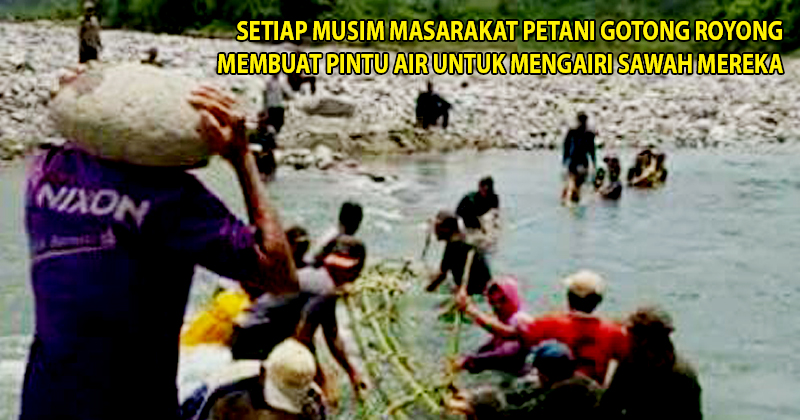 Kondisi tersebut terjadi lantaran belum adanya bangunan pintu air irigasi yang dibangun oleh pemerintah daerah setempat. Sehinga setiap kali musim turun kesawah secara bersama-sama masarakat desa setempat membuat bendungan dengan material seadanya.