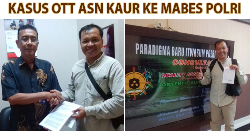PORTAL KAUR – Lantaran dinilai belum ada perkembangan status dari pelaku pejabat eselon IV pegawai BKDPSDM, BG yang terkena OTT oleh Polda Bengkulu pada Sabtu (15/07) silam yang hingga kini belum ada penetapan tersangka baru, FWLOB Kaur melaporkan ke Mabes Polri.