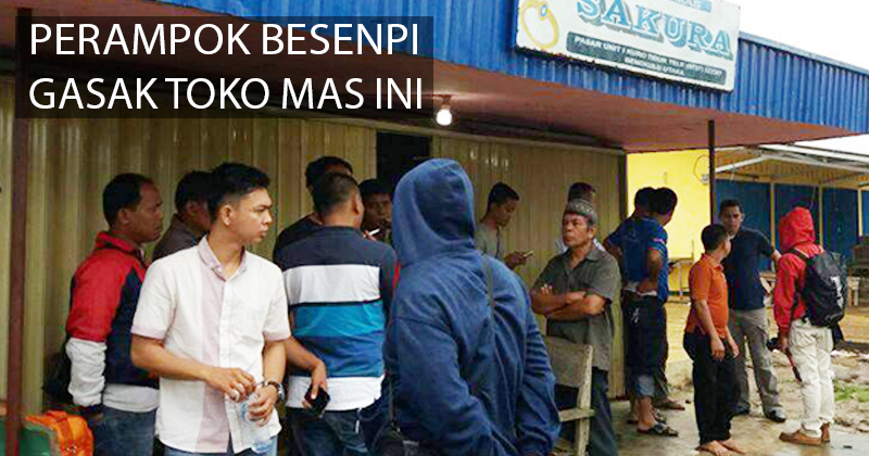 PORTAL BENGKULU UTARA – Aksi perampokan terhadap toko mas Sakura di Marga Sakti Unit Satu, Kecamatan Padang Jaya Kabupaten Bengkulu Utara pada Rabu (20/09), 4 dari 6 orang pelaku memegang senjata api membobol pintu belakang toko mas milik H Dalimi Sidik (72) sekitar pukul 02:30 WIB dini hari.