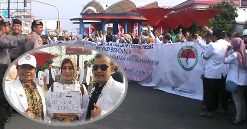 PORTAL BENGKULU – Menuntut agar pelaku penganiayaan ringan terhadap dokter RSU Lebong yakni Ketua DPRD Lebong Teguh Raharjo Eko Purwoto supaya diproses secara hukum, Sabtu (23/09) Ikatan Dokter Indonesia (IDI) Bengkulu menggelar aksi di Bundaran Simpang Lima Kota Bengkulu.