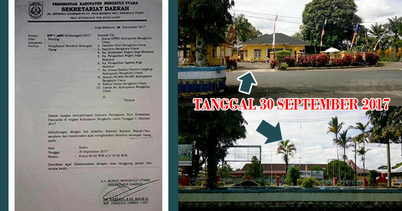 Surat Sekda Nomor 003-1/2285/Kesbangpol/2017 ditandatangani oleh Sekda Dr Haryadi SPd MM MSi itu, pada intinya meminta agar mengibarkan bendera setengah tiang pada tanggal 30 september 2017 sejak pukul 06:00 WIB Pagi hingga pukul 18:00 WIB.