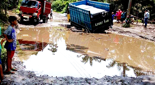 Sebuah truck dari arah kota Bengkulu bermuatan kawat bronjong tertanam sejak pagi akibat terperangkap dalamnya lumpur di jalan tersebut, disusul disiang harinya satu buah mobil membawa pasir mengalami patah As di lubang yang sama.