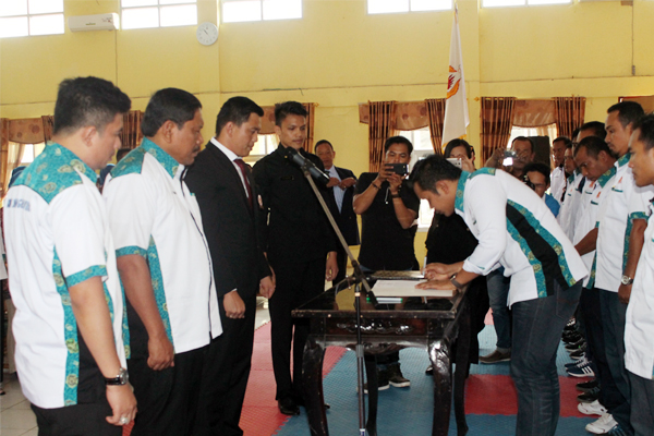 PORTAL BENGKULU UTARA – Pelantikan/ penguikuhan pengurus Komite Olahraga Nasional Indonesia (KONI) kabupaten Bengkulu Utara Kamis (9/02) di Balai Pertemuan Ratu Samban Arga Makmur, berjalan lancar dan khidmat.