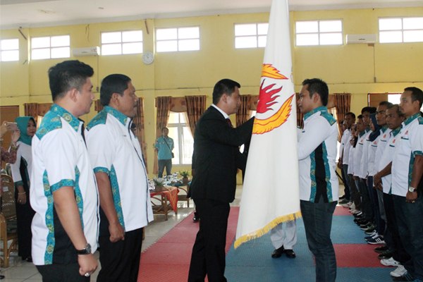 | Penyerahan Bendera KONI dari Ket. Prov ke Ket. Kabupaten |