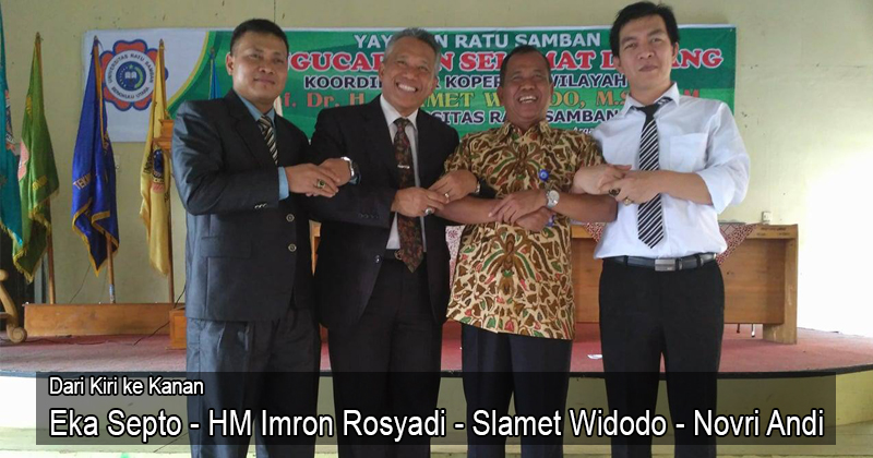 PORTAL BENGKULU UTARA – Kordinator Perguruan Tinggi Swasta (Kopertis) Wilayah II Sumatera bagian Selatan, Prof Slamet Widodo menegaskan, dirinya siap seratus persen membantu rektor Unras Dr HM Imron Rosyadi mengembangkan perguruan tinggi kebanggaan Bengkulu Utara tersebut.