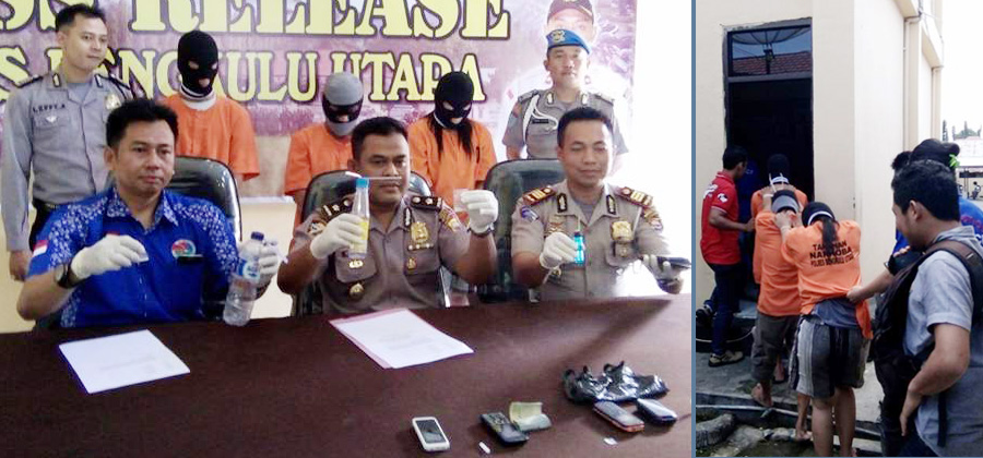 Kapolres Bengkulu Utara AKBP Andhika Vishnu SIk melalui Kabag Ops Kompol Erwin SIk saat Perss Release didampingi Kasat Narkoba Iptu Agus Norman SH MH beserta Kasat Lantas AKP Hendriyanto Hutasoit  di Mapolres BU mengungkapkan, penangkapan pada Selasa (08/08) dipimpin langsung oleh Kasat Narkoba.
