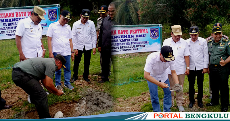 PORTAL BENGKULU UTARA – Usai kegiatan panenraya padi, PLt Gubernur Bengkulu Dr drh H Rohidin Mersyah, bersama Bupati BU Ir Mian, Dandim 0423 BU Letkol. Arh. Ari Trisenta Nursanto, Wakil Bupati Arie Septia Adinata SE, DPRD dan unsur terkait lainnya Rabu (7/2) melakukan peletakan batu pertama RMU Desa Karya Jaya Kecamatan Marga Sakti Sebelat.