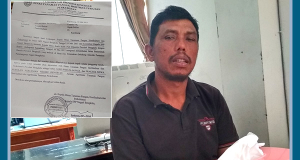 “Dalam surat tersebut pihak dinas mengatakan bahwa lahan yang saya garap dari tahun 2012 ini akan dijadikan lahan Agro wisata bunga dan Praktek siswa sekolah pertanian negeri bengkulu dan saya merasa bingung padahal sepengetahuan saya tanah tersebut pernah diganti rugi tanam tumbuhnya oleh Pemda Kabupaten Kepahiang,” kata Dia, Sabtu.