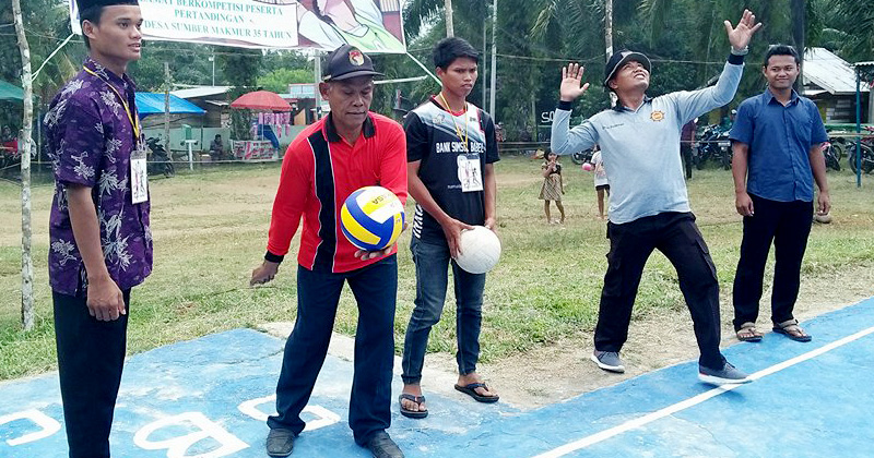 | 7. Kades Sumber Makmur Pakde Jumat melakukan pemukulan pertama tanda dimulainya pertandingan bola voli |