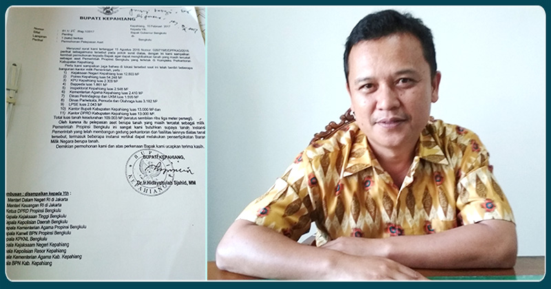 “Diatas lahan dimaksud sudah banyak berdiri bangunan milik pemkab Kepahiang, untuk itu kita menyurati pihak provinsi guna mendapatkan surat hibah, sebab itu merupakan sarat mutlak dalam pengurusan sertifikat,” tutur Iwan, Kamis.