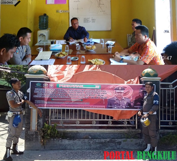 Rabu (27), dengan di pimpin oleh Kabid Ketertiban Umum dan Ketentraman Masyarakat, Andrian aristiawan SH di ruang rapat Kantor Satpol PP yang diikuti oleh Kabag Ops Polres Lebong, Danramil Lebong Atas, Kabid Pendapatan BKD Lebong serta Kabid Perhubungan Dinas PUPR-Hub Lebong. Rapat menghasilkan kesimpulan yakni menegakan Perda 15 tahun 2007 dan melakukan penertiban hewan ternak yang lepas liar.
